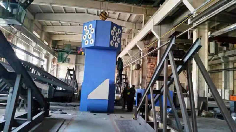 整體凈化空調(diào)機組原理通過風(fēng)機引力作用,車間廢氣經(jīng)電動風(fēng)口吸入設(shè)備進風(fēng)口,設(shè)備進風(fēng)口處設(shè)有阻火網(wǎng),火花經(jīng)阻火網(wǎng)被阻留,煙塵氣體進入沉降室,利用重力與上行氣流,首先將粗粒塵直接降至灰斗,微粒煙塵被濾芯捕集在外表面,潔凈氣體經(jīng)濾芯過濾凈化后,由濾芯中心流入潔凈室,附著在濾芯表面的微粒煙塵經(jīng)反吹系統(tǒng)的反吹做用使微粒煙塵落入灰斗。潔凈氣體經(jīng)風(fēng)機室,到達空調(diào)室,使?jié)崈魵怏w升至(或降至)系統(tǒng)預(yù)設(shè)溫度,在經(jīng)設(shè)備頂部球形噴口的射流作用,把已達到預(yù)定溫度的潔凈氣體送入車間12m范圍內(nèi)。