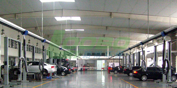 不同形式的鋁合金吸氣滑軌可以滿足較多的廢氣量的需要,吸氣軟管可根據(jù)相應(yīng)的現(xiàn)場狀況配置不同的直徑和長度。吸氣滑車可以根據(jù)程序自動行走、自動提升、自動脫鉤。